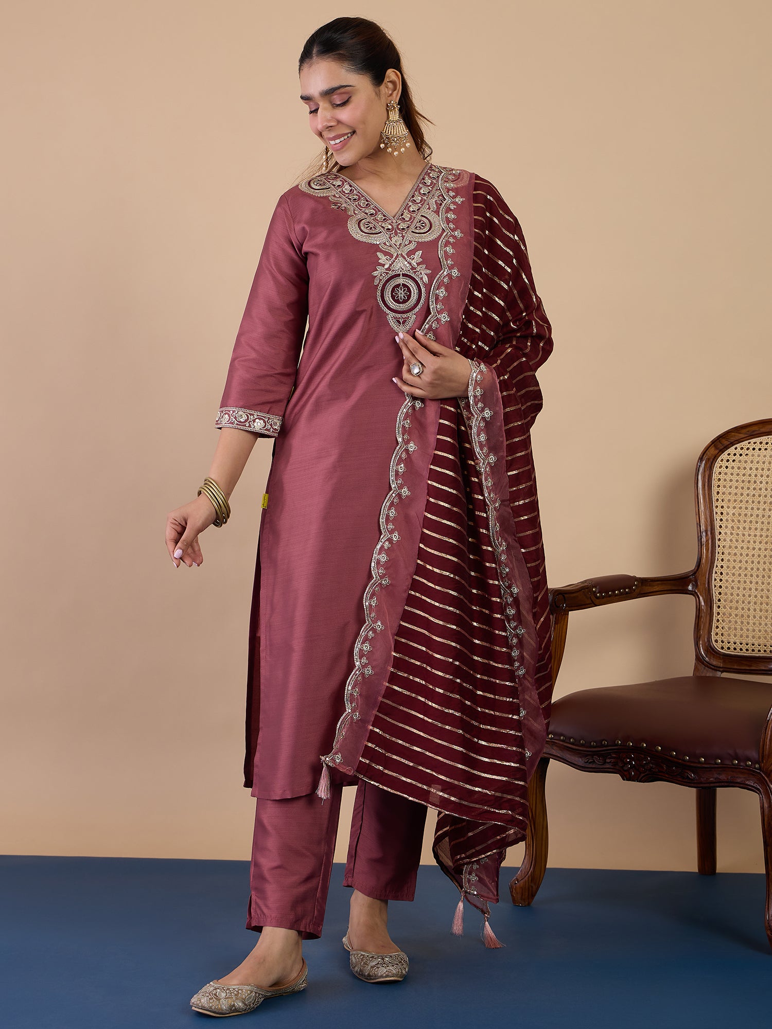 Aabharan Elegant Silk Blend Kurta Pant Dupatta Set Lightweight Soft Ready to Wear Stylish Outfit