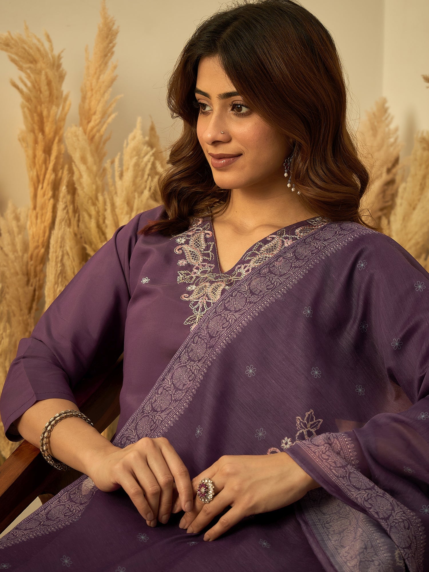 Charvi Lavender Women’s Traditional Kurta Pant Set with Dupatta