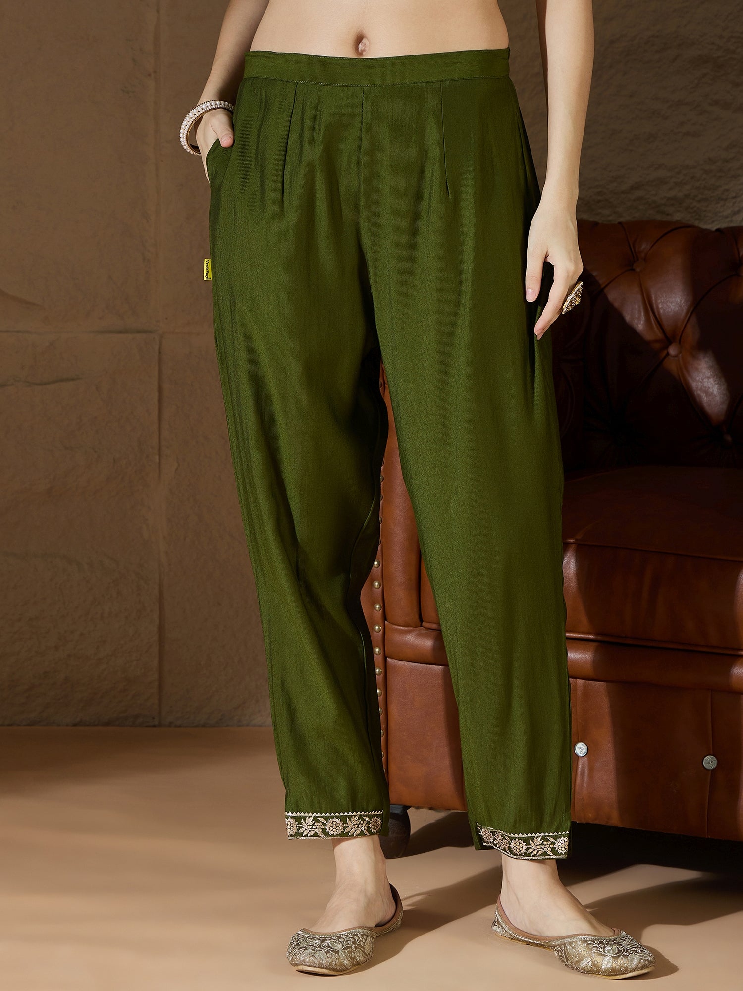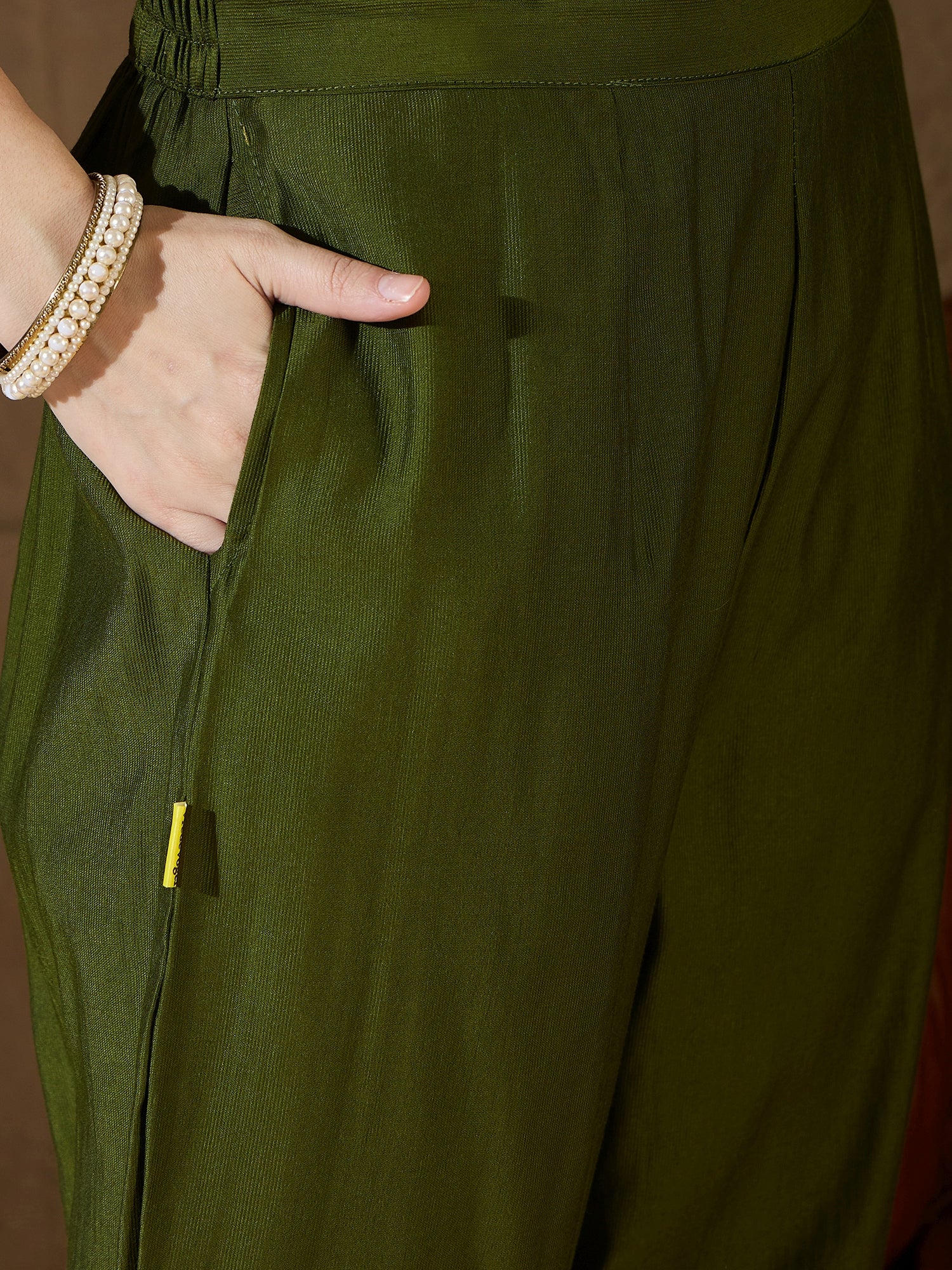 Pavani Charm Mehndi Yoke Design Silk Blend Straight Suit With Dupatta