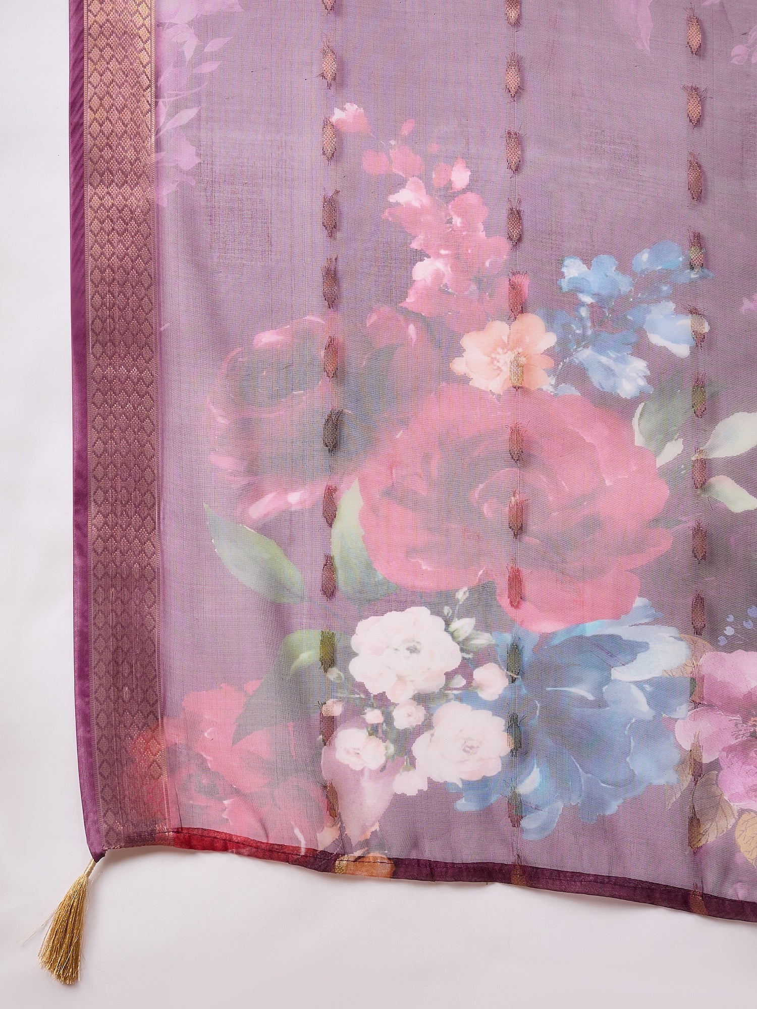 DivyaRaag Purple Viscose Roman Silk Embroidery Straight Suit Set