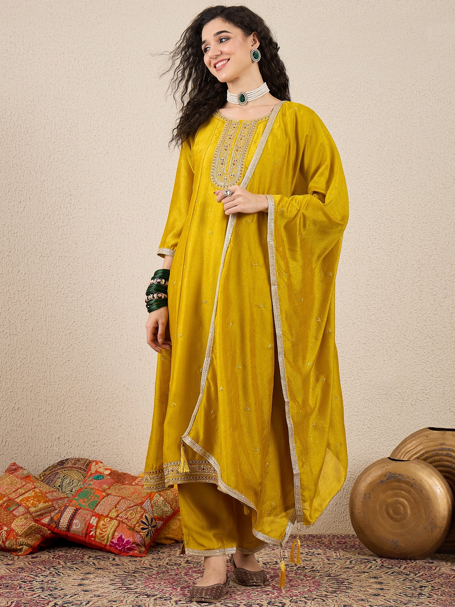 Zulekha Yellow Silk Blend Embroidered Anarkali Set