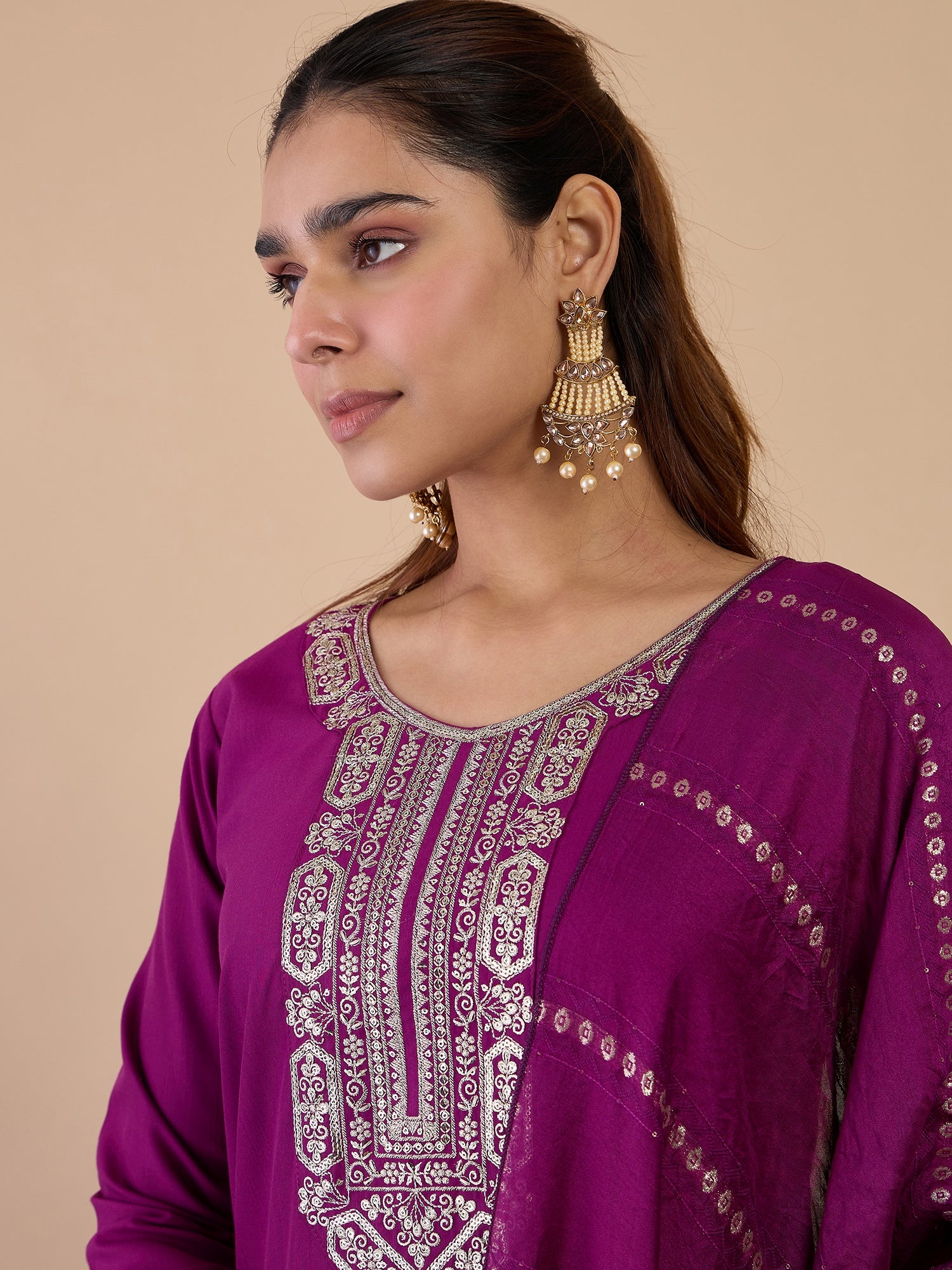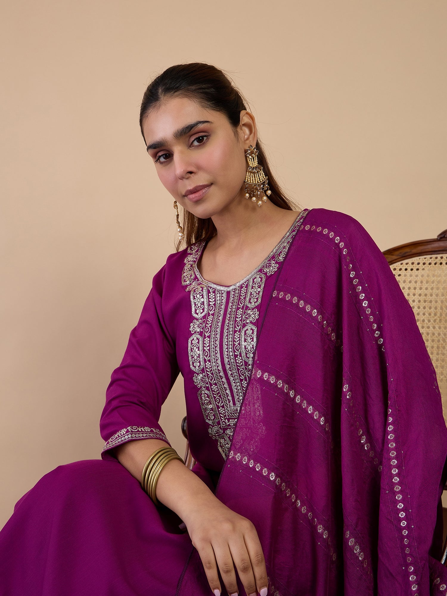 Nyra Purple Women’s Traditional Kurta Pant Set with Dupatta