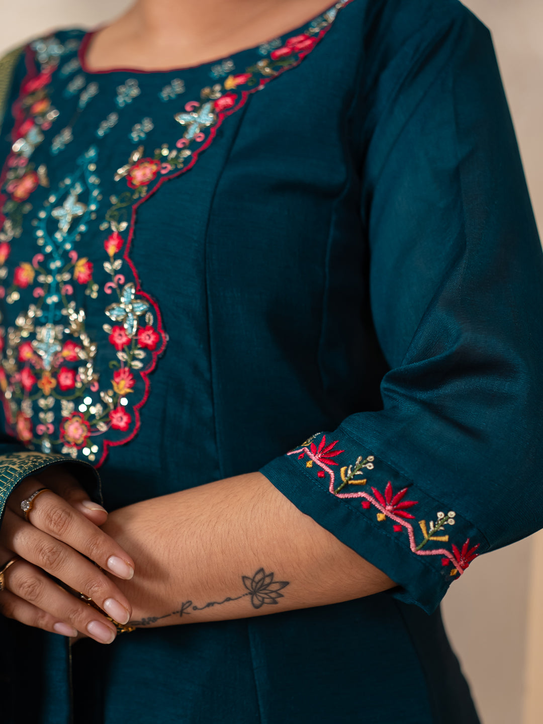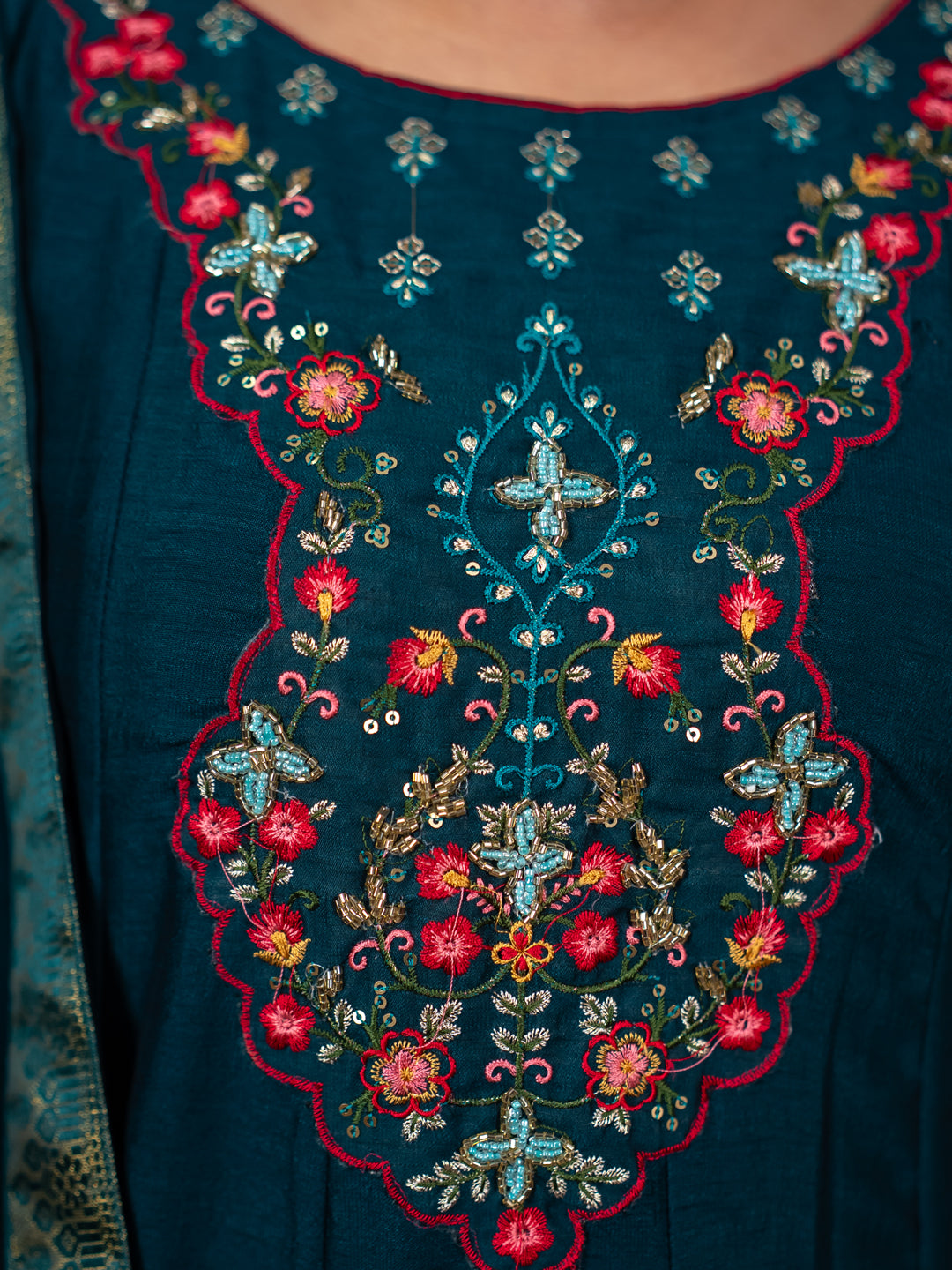 Pavya Teal Women Silk Blend Kurta Pant Dupatta Set