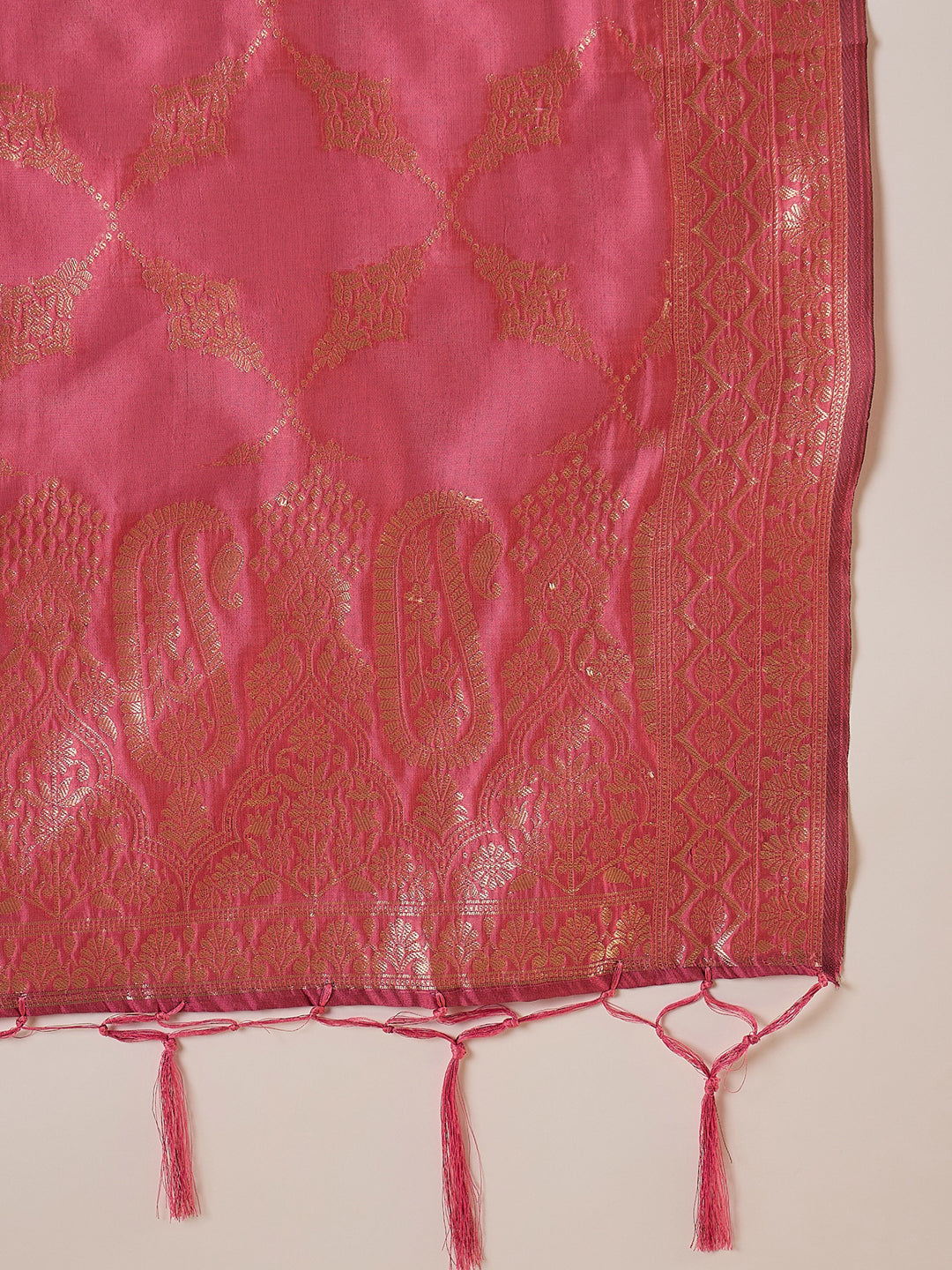 Elevate your ethnic wardrobe with the VredeVogel Women’s Kurta and Pant Set, crafted from a luxurious silk blend fabric for a premium feel and effortless elegance. This ready-to-wear set includes a beautifully embroidered kurta with three-quarter sleeves, a matching silk blend pant, and a stunning Banarasi silk dupatta for a complete traditional look. The full inner lining in the kurta ensures comfort, while the lightweight silk blend fabric drapes gracefully, keeping you cool and stylish. Perfect for festive occasions, weddings, or ethnic gatherings, this embroidered kurta set exudes sophistication. The contrast-colored pumps and flashy accessories will enhance its charm, making you stand out. Designed for a perfect fit, this handcrafted silk kurta set is a must-have for fashion-forward women who love trendy ethnic wear. Shop now for a stylish, elegant, and comfortable outfit that blends traditional craftsmanship with modern aesthetics.