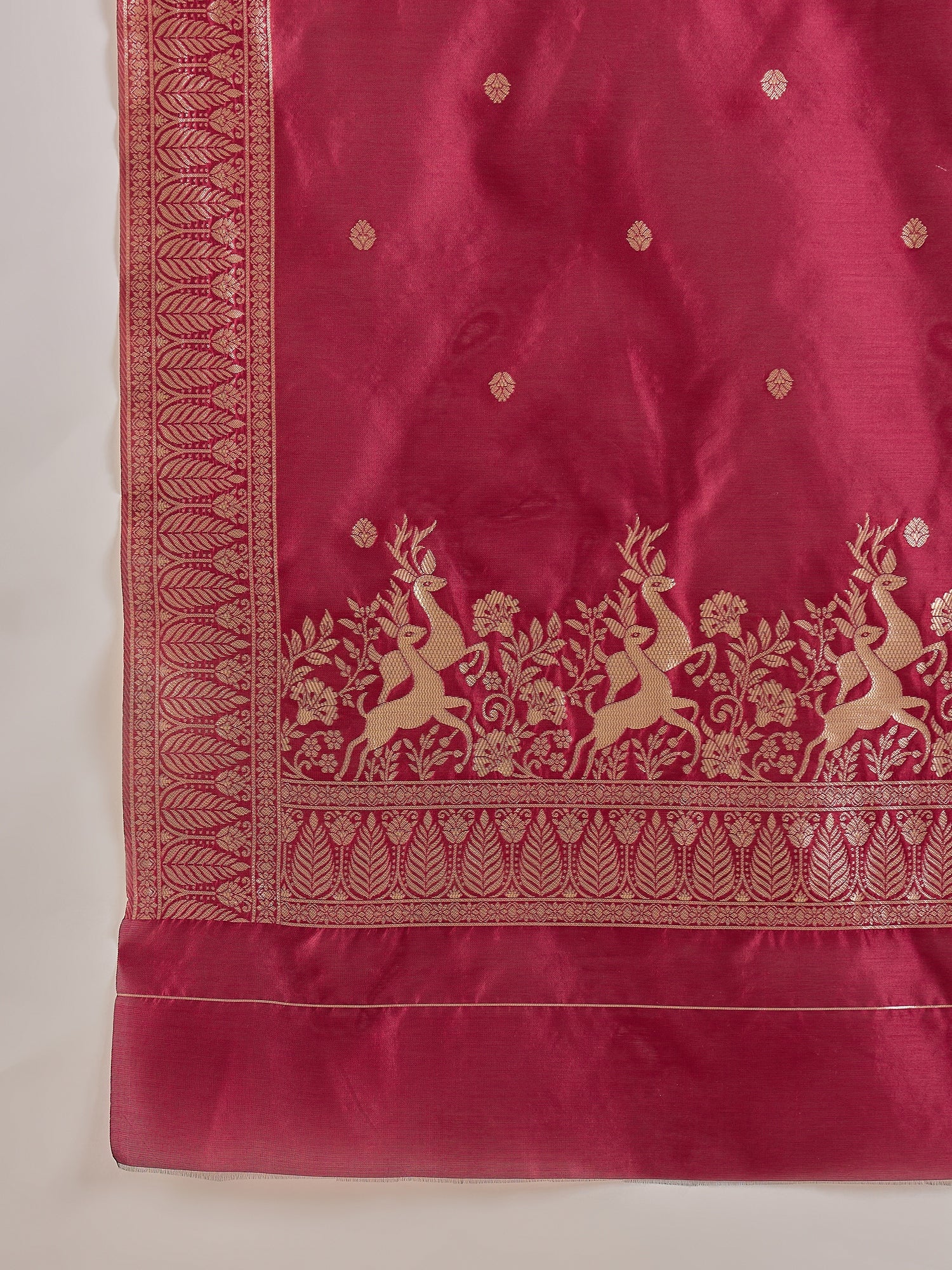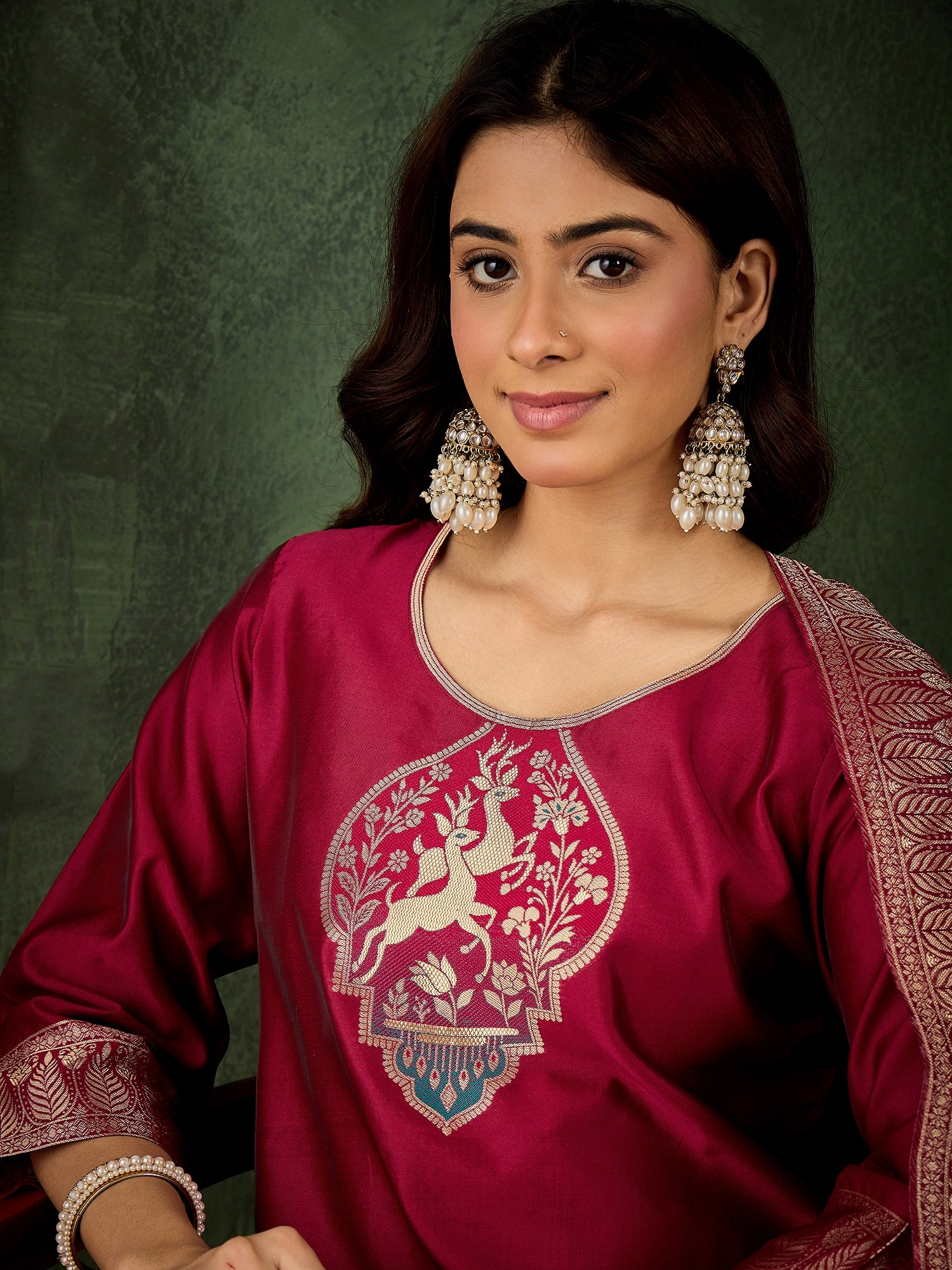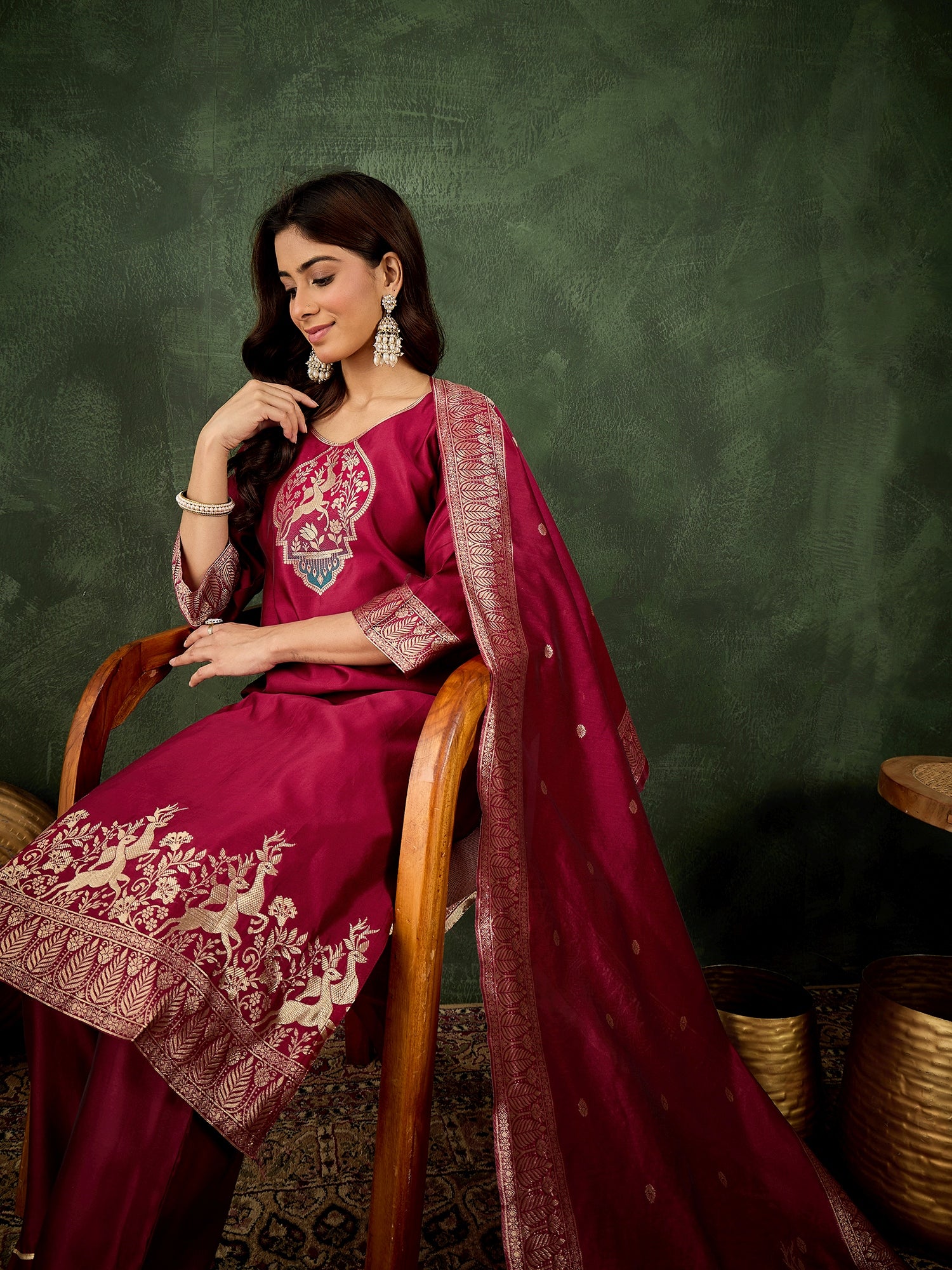 Roop Women's Silk Blend Banarasi Jacquard Zari Woven Straight Kurta Pant with Dupatta Set