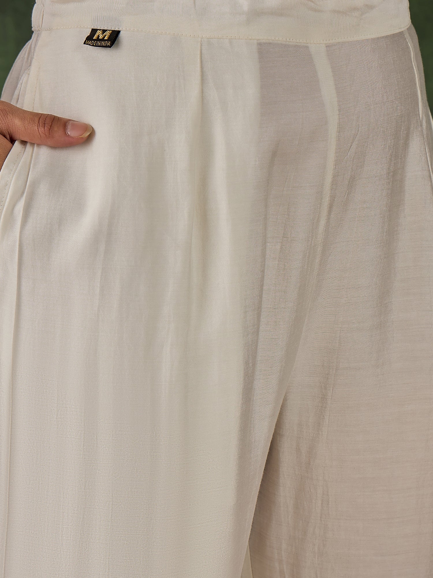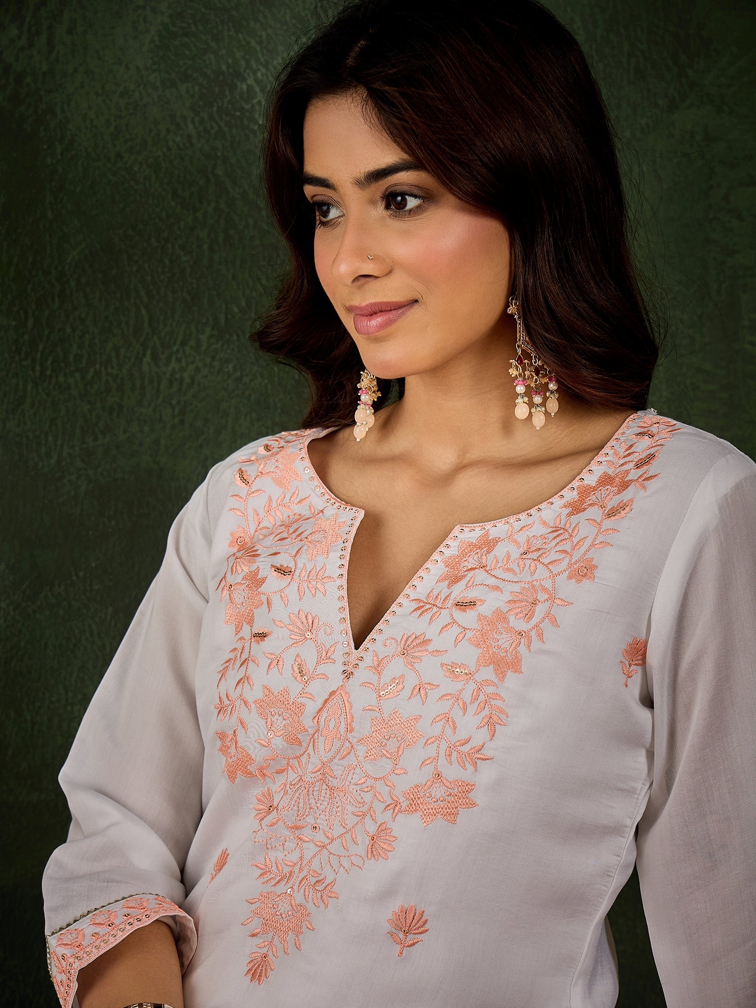 Dhanu Women's Silk Blend Embroidered Straight Kurta & Pant Set