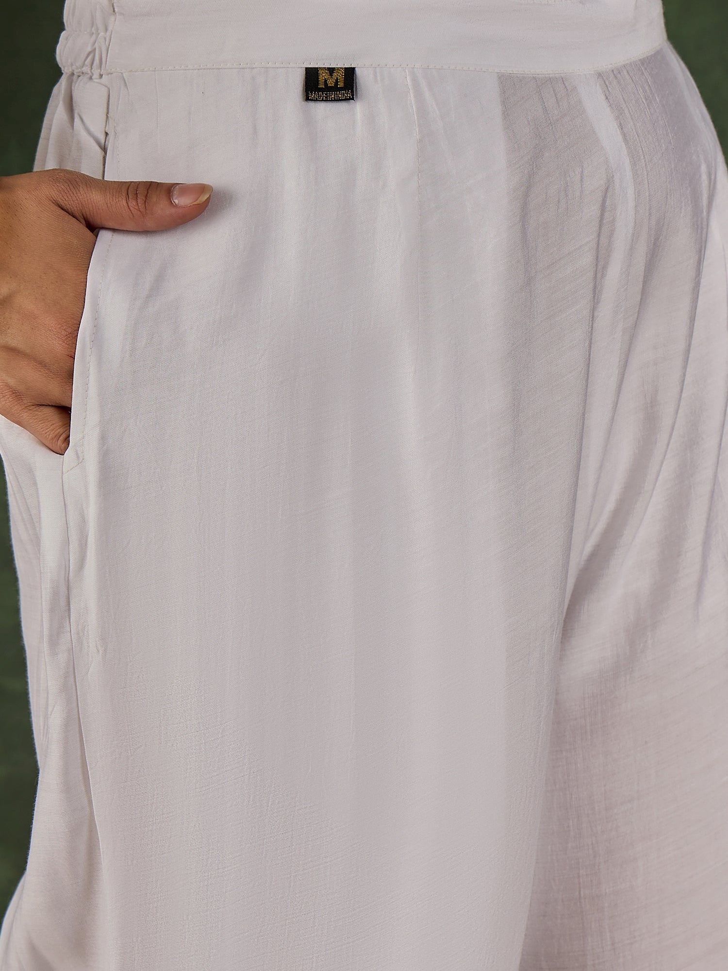 Shyamarani Women's Silk Blend Embroidered Straight Kurta & Pant Set