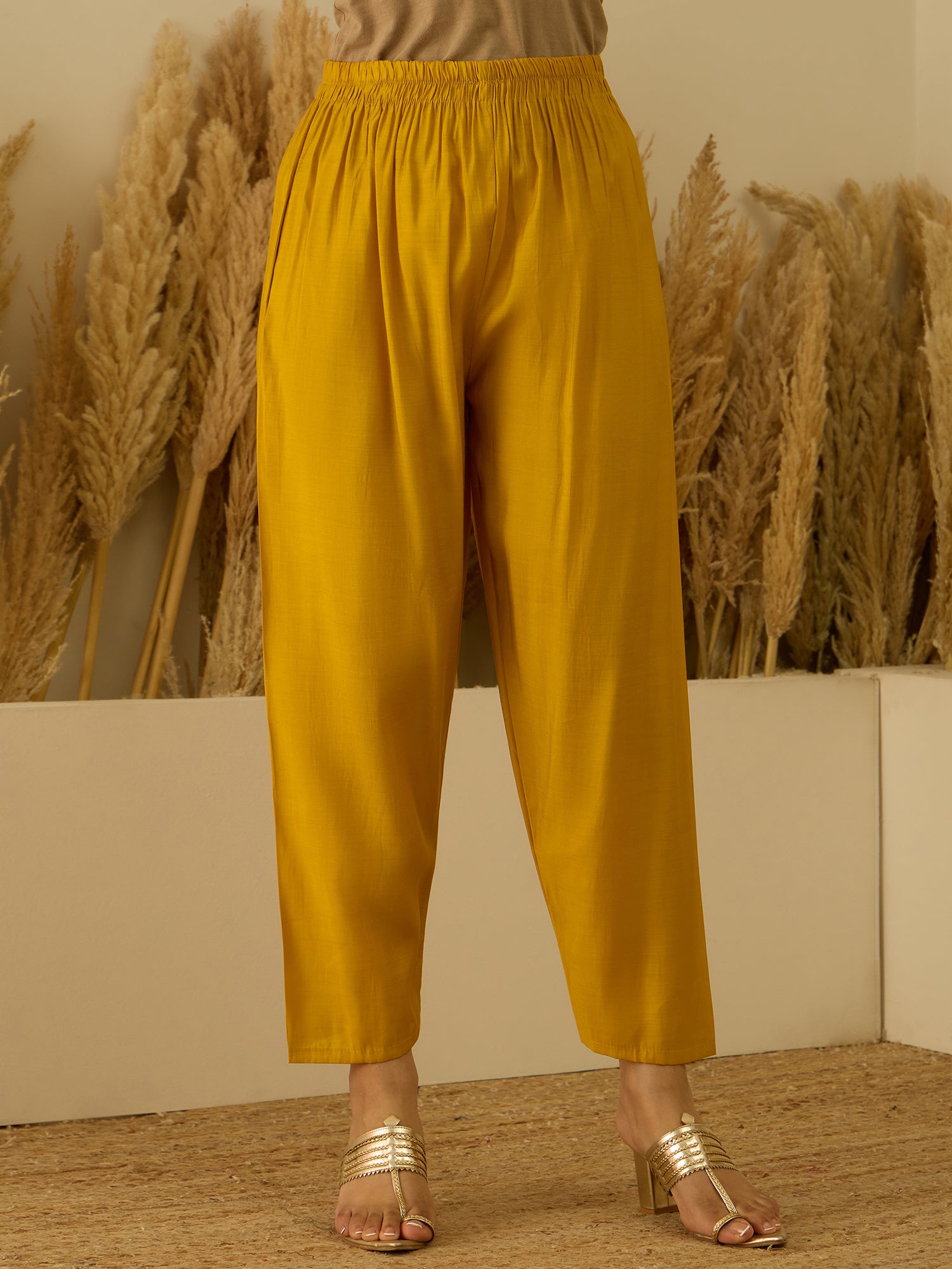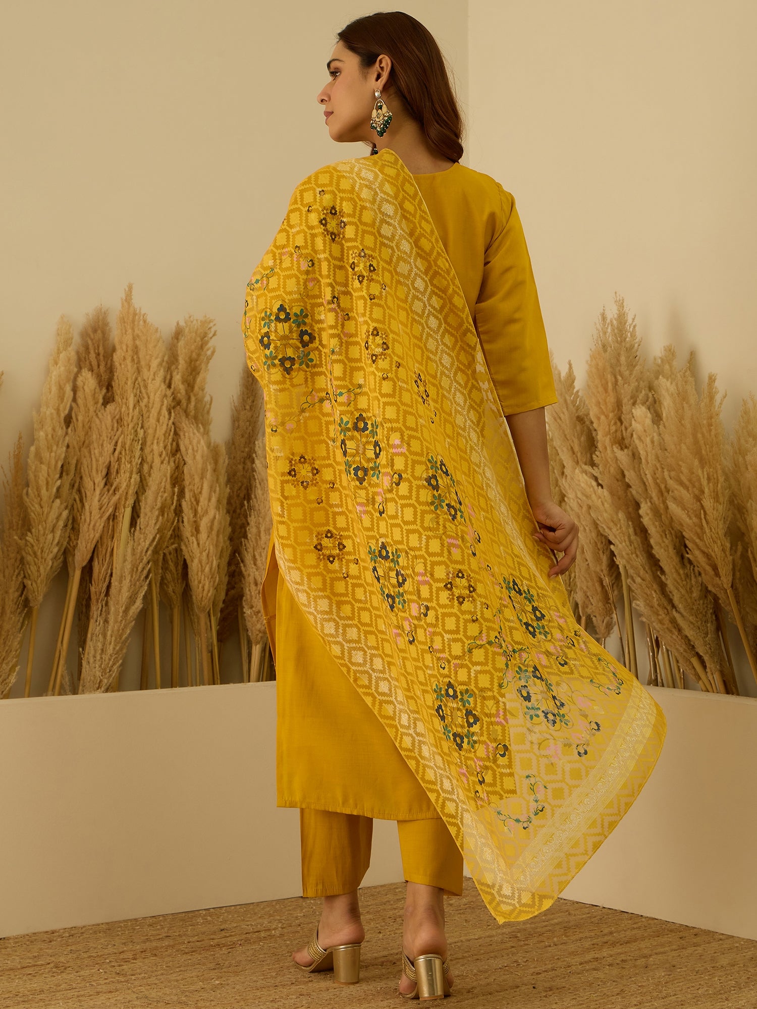 Saumya Yellow Women Kurta and Pant Dupatta Sets Silk Fabrics with Embroidery