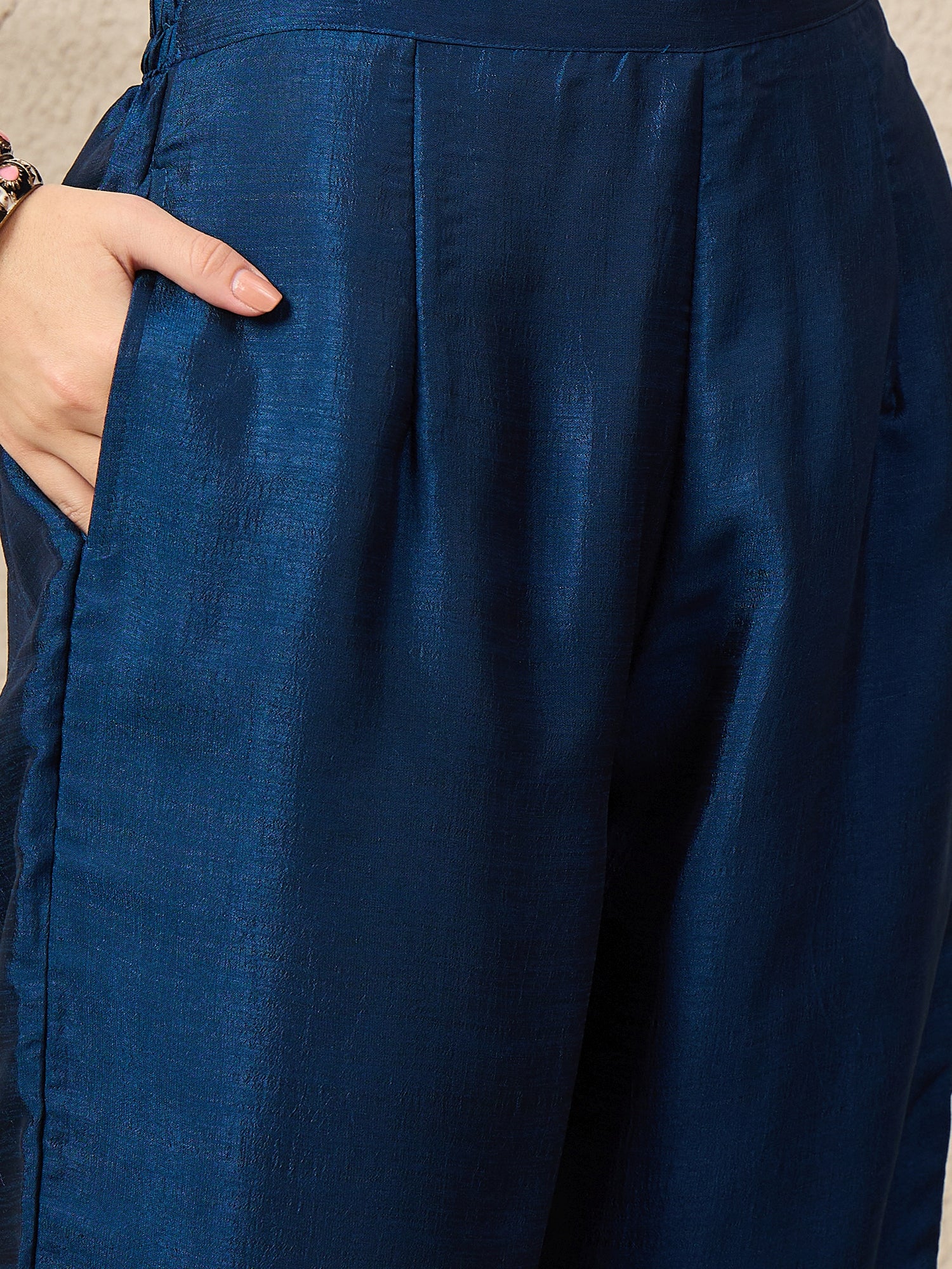 Shagun Teal Embroidered Silk Blend Anarkali Kurta Pant With Dupatta Set