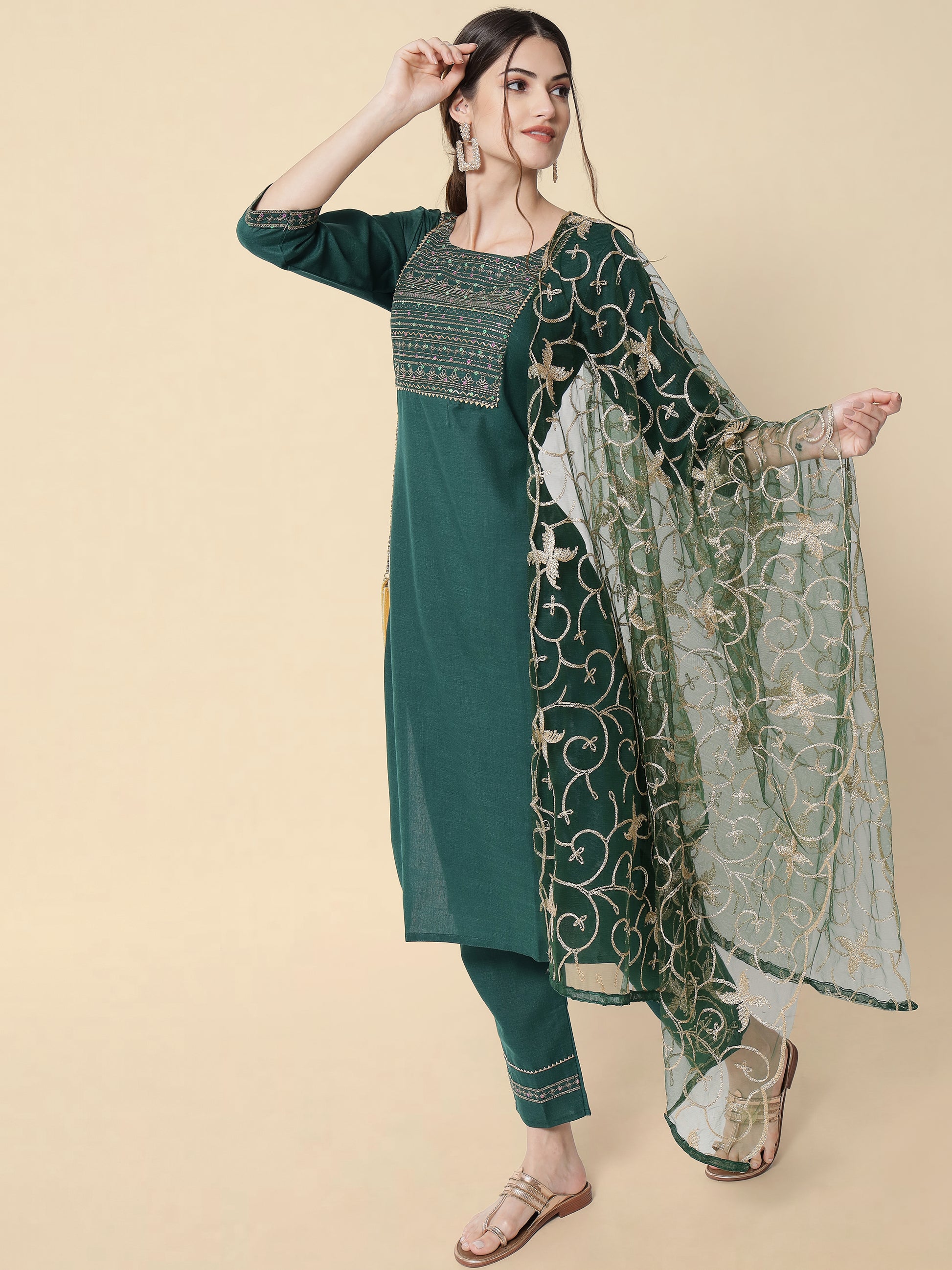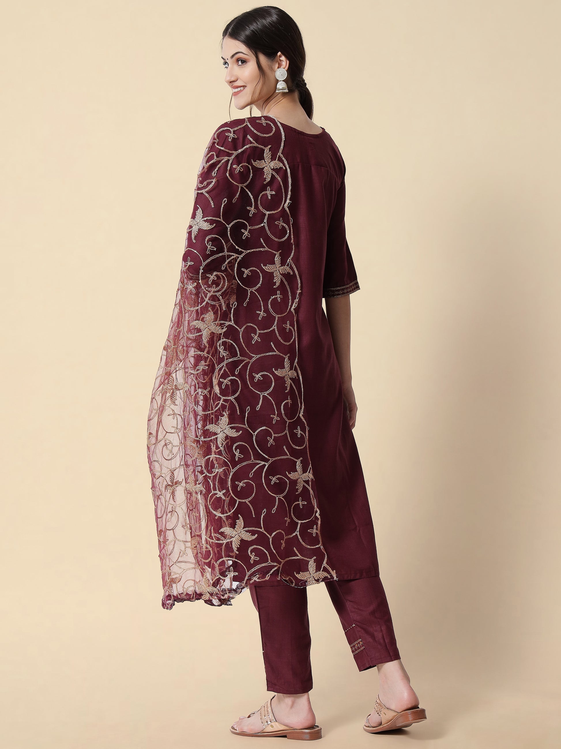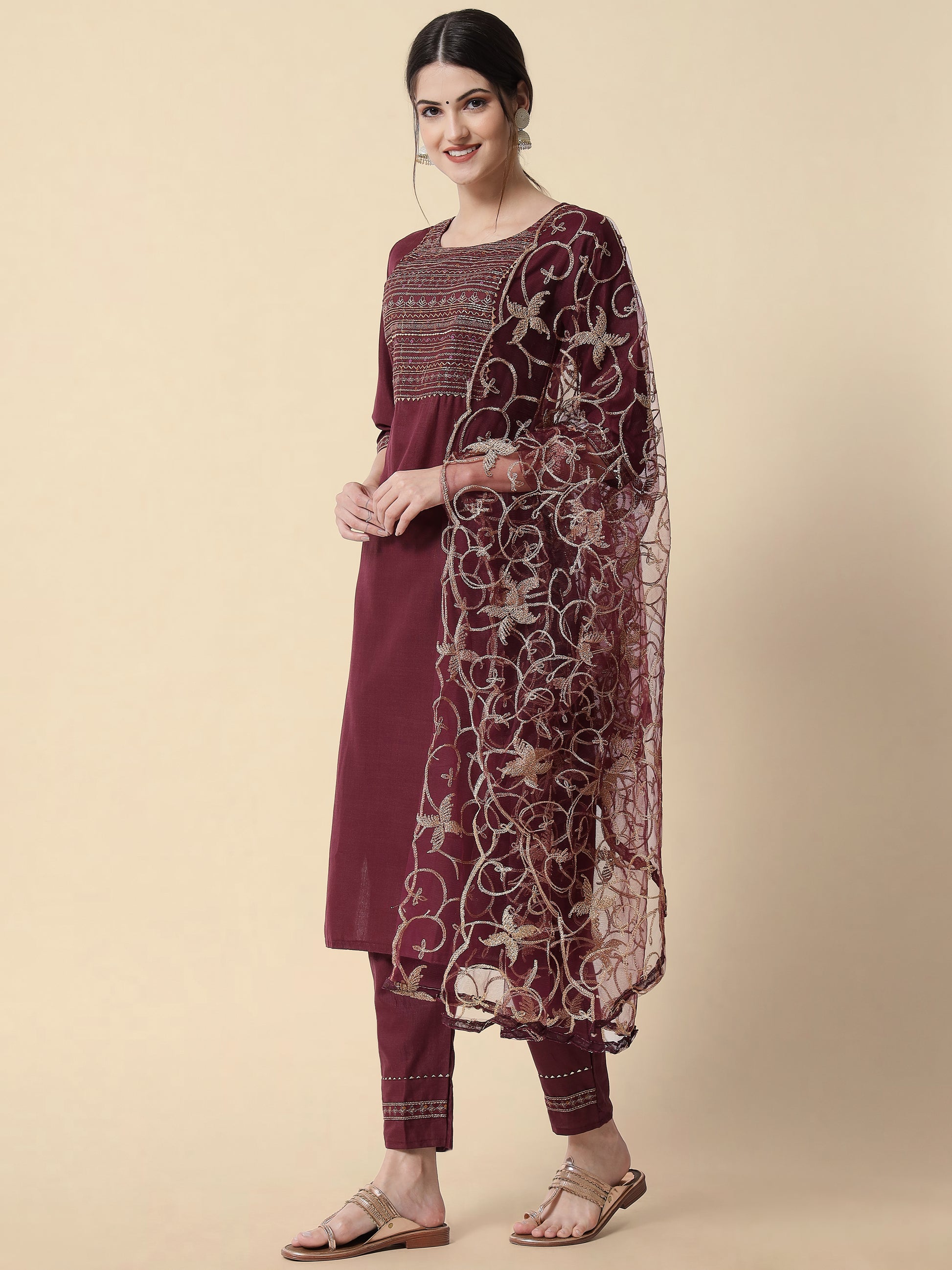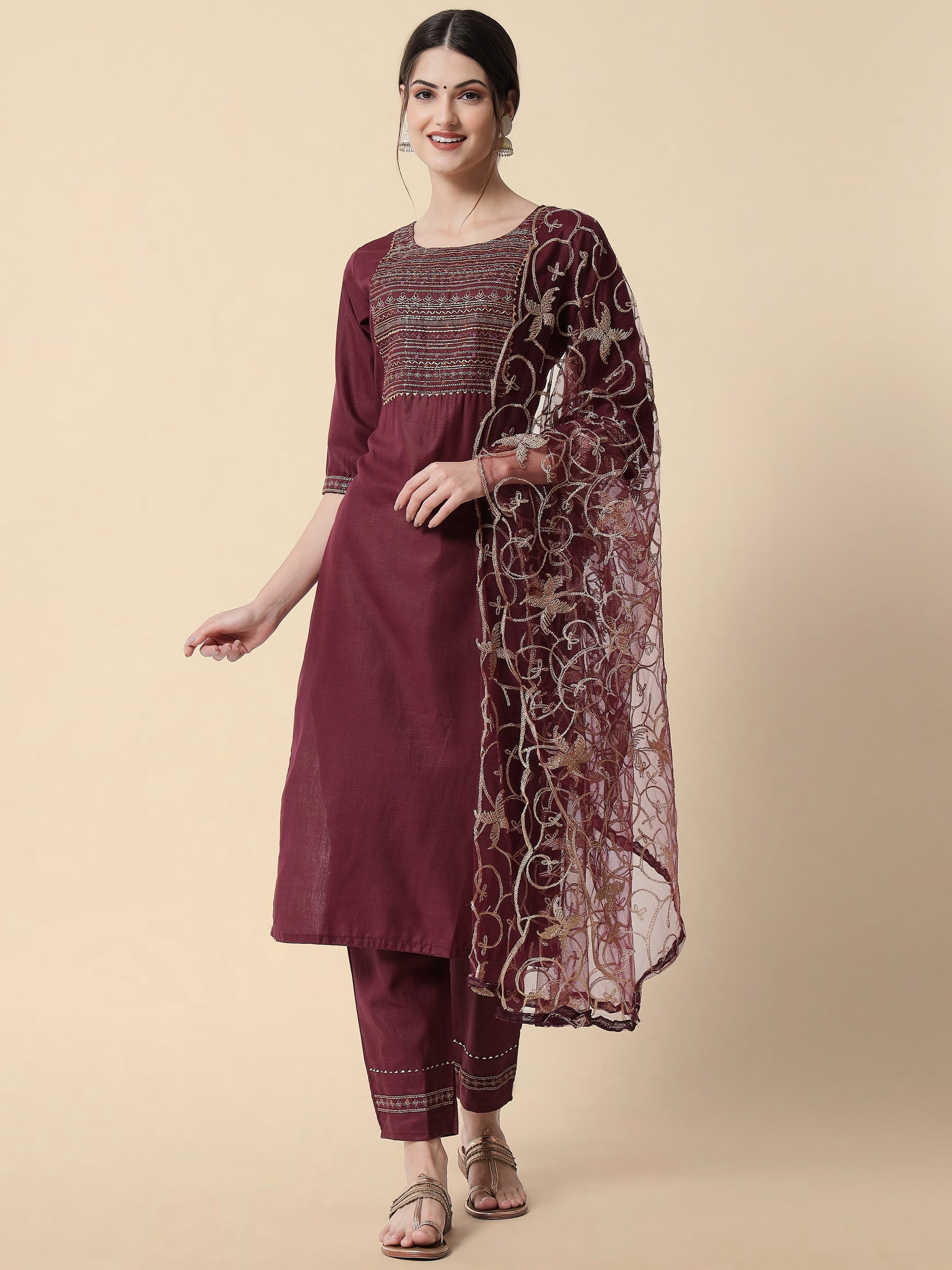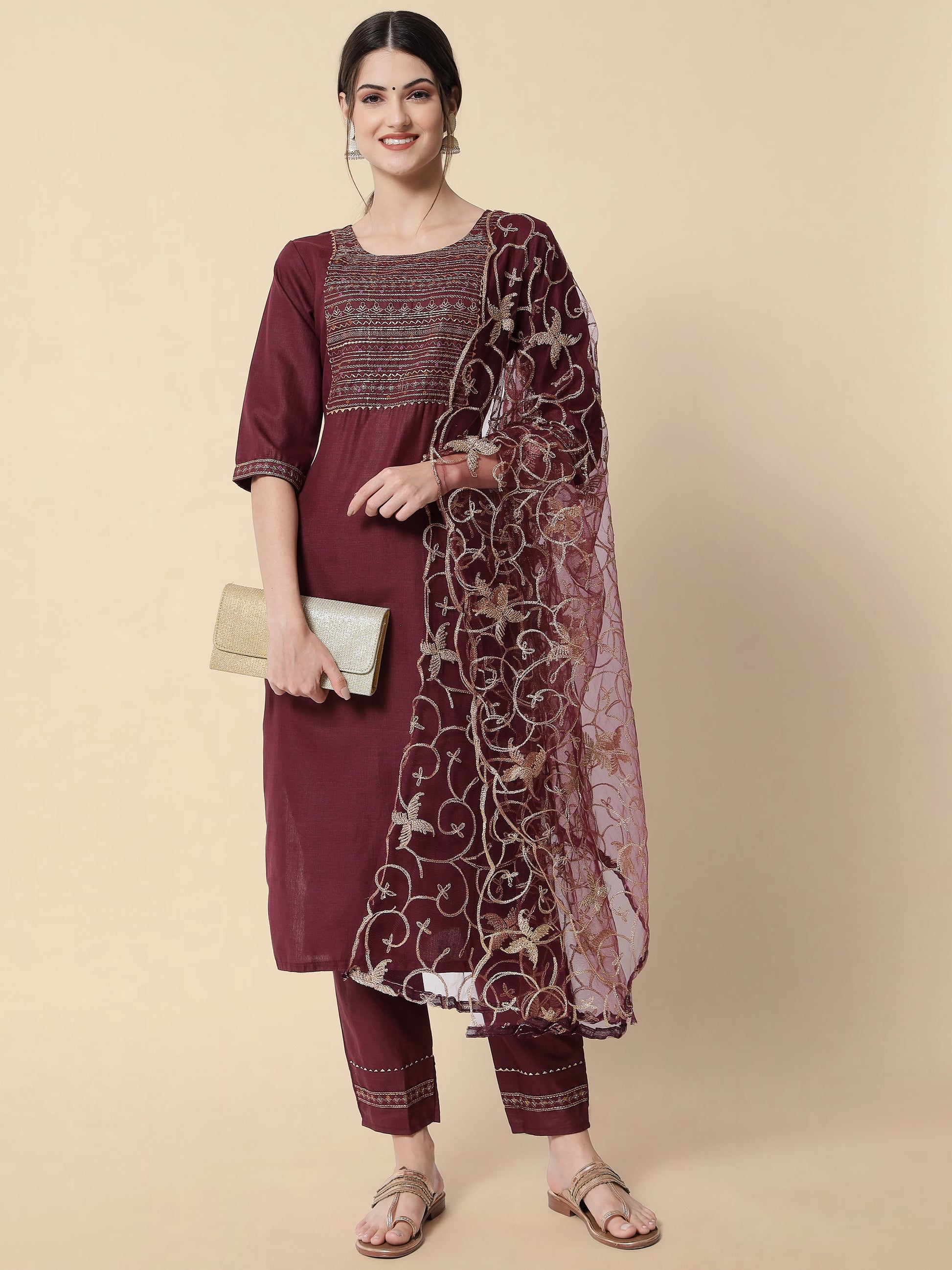 VredeVogel Embroidery Kurta Pant With Net Embroidery Dupatta