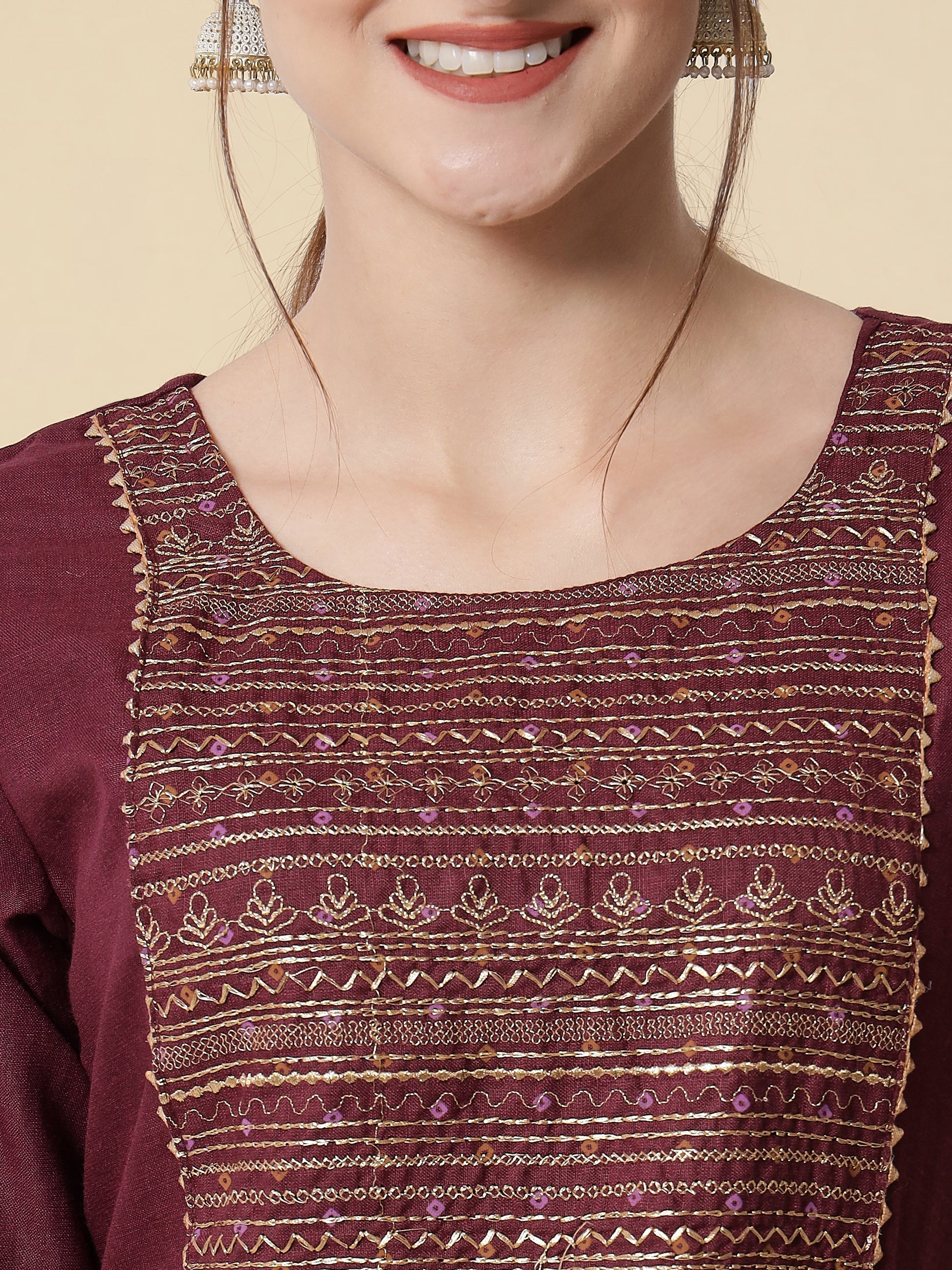 Straight Cotton Kurta Pant & Dupatta has a Round Neck, 3/4 Sleeve, Straight hem, side slit. It will keep you comfortable for a Party Wear look. Pair it with high heels and look effortlessly chic and fashionable.