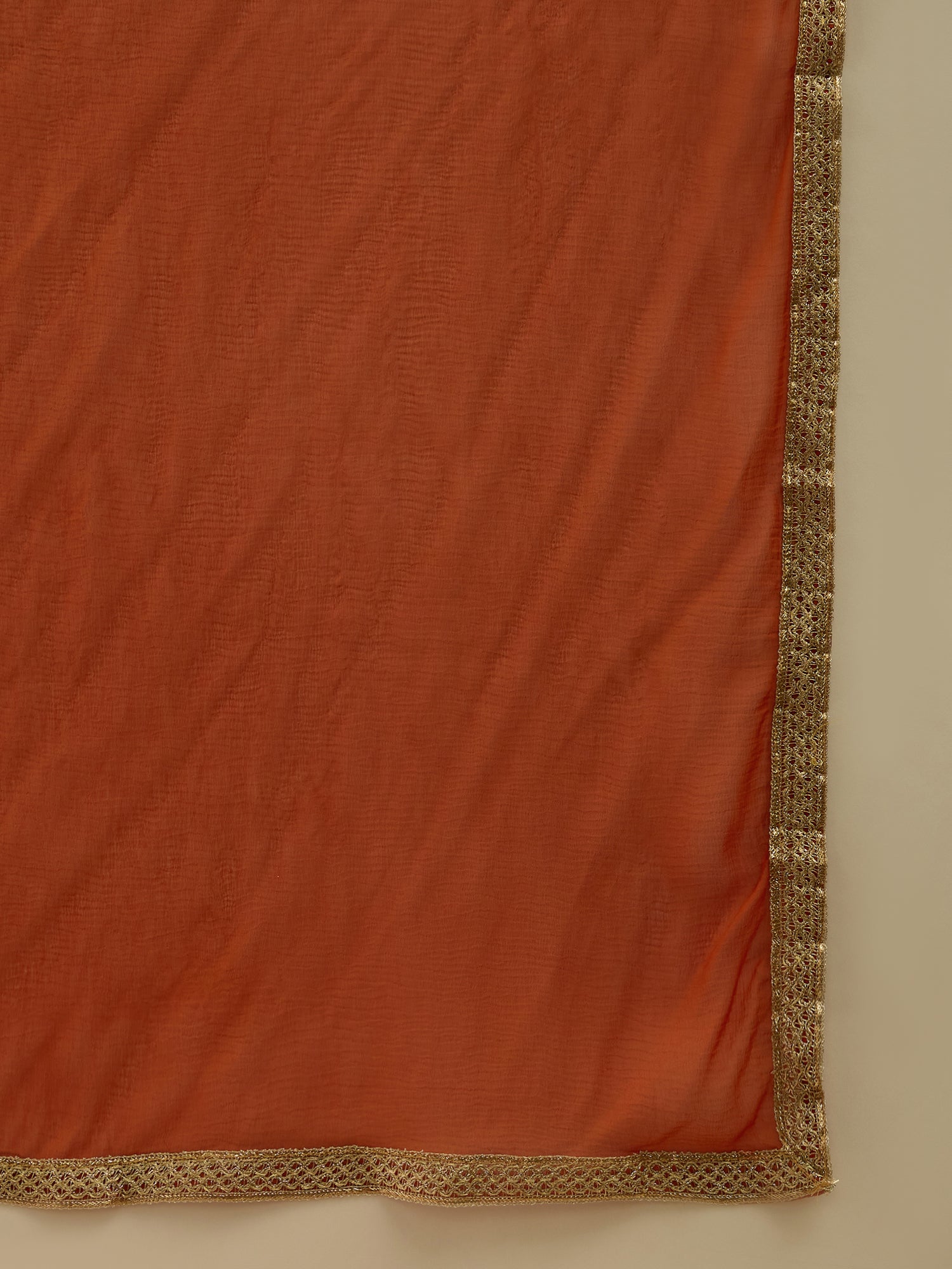 VredeVogel Rust Viscose Rayon Embroidered with Sequins Straight Kurta Set with Trousers & Dupatta