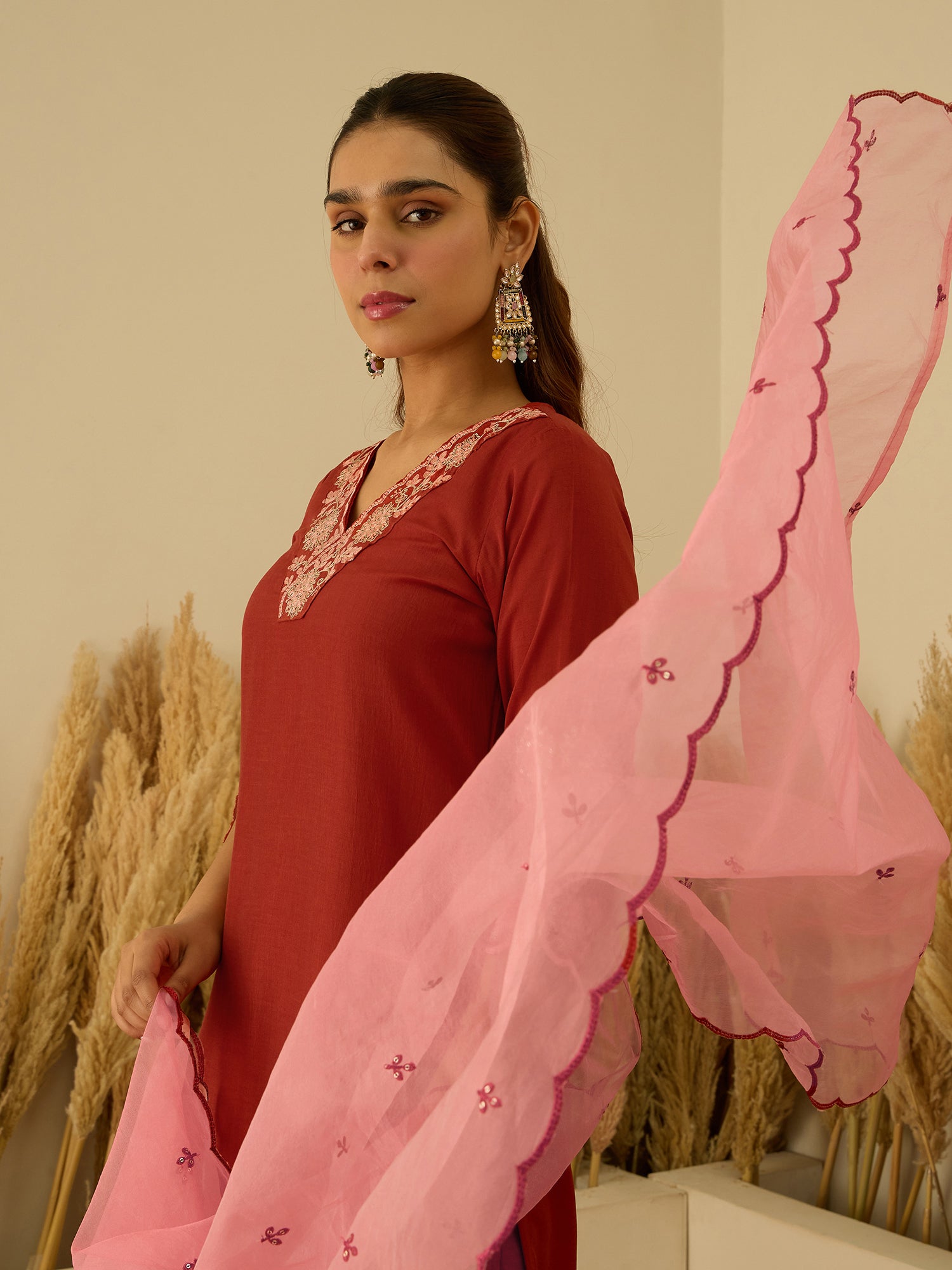 VredeVogel Women Kurta and Pant Sets Chanderi Silk Blend