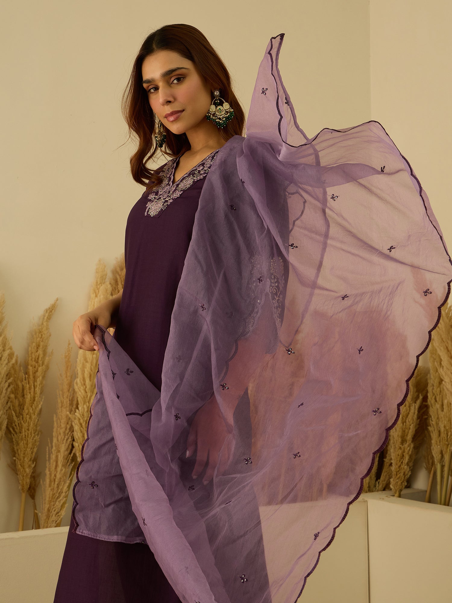 VredeVogel Women Kurta and Pant Sets Chanderi Silk Blend
