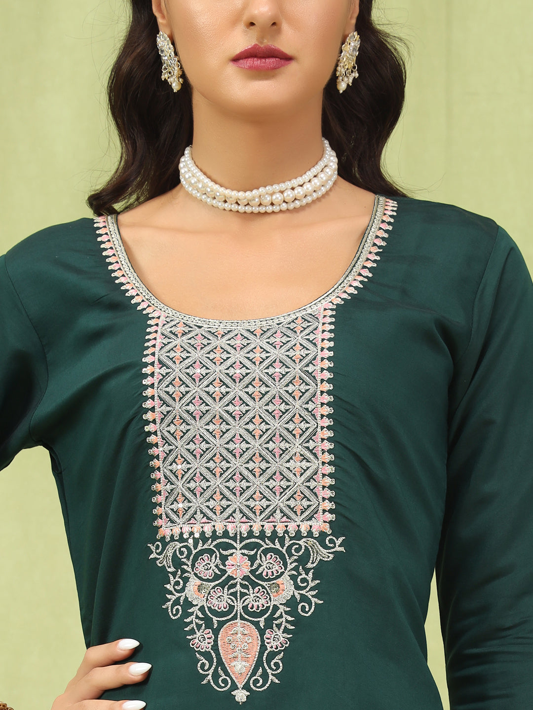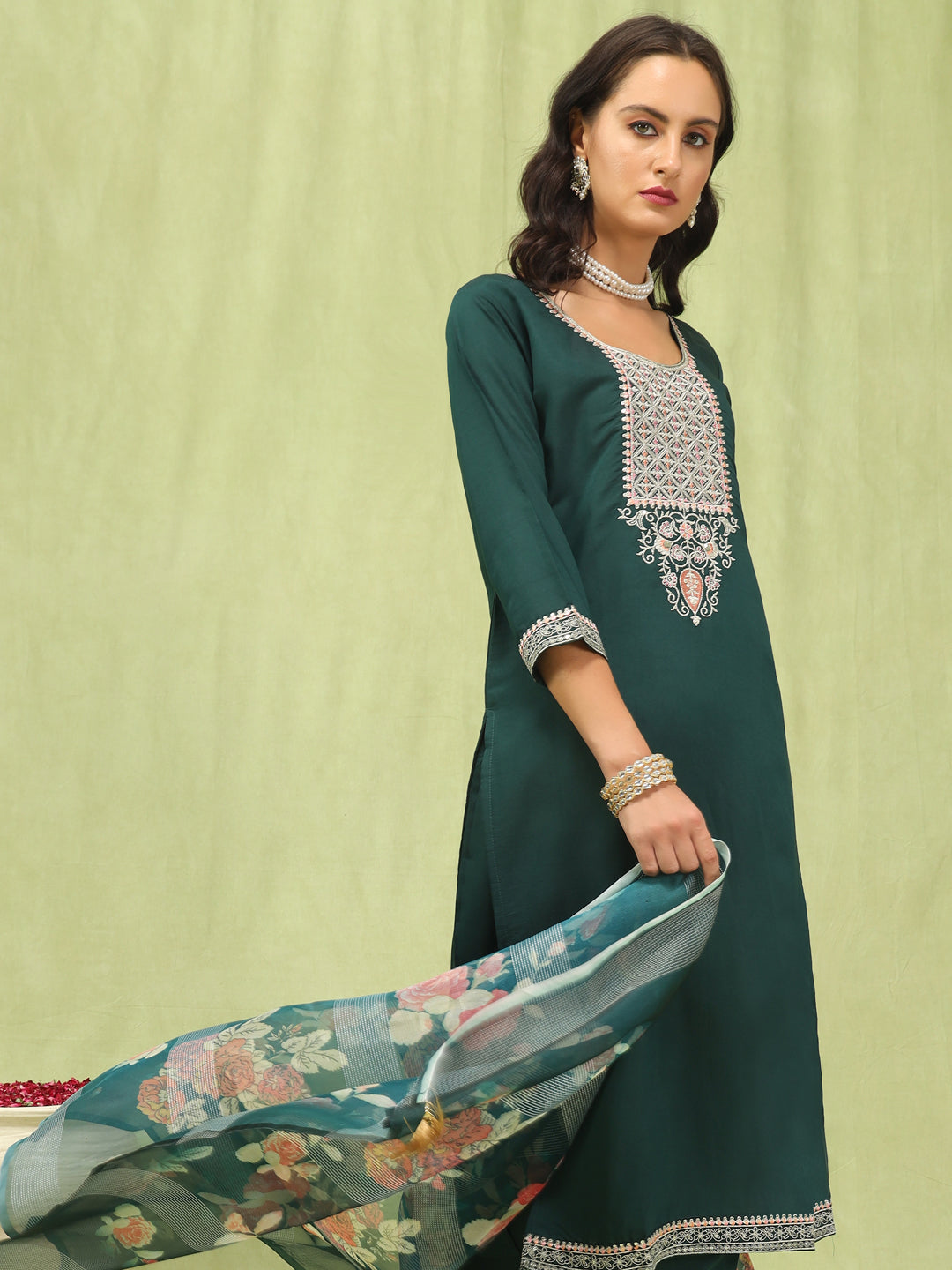 Kshatra Women’s Viscose Roman Silk Embroidery Straight Kurta Pant with Dupatta Set
