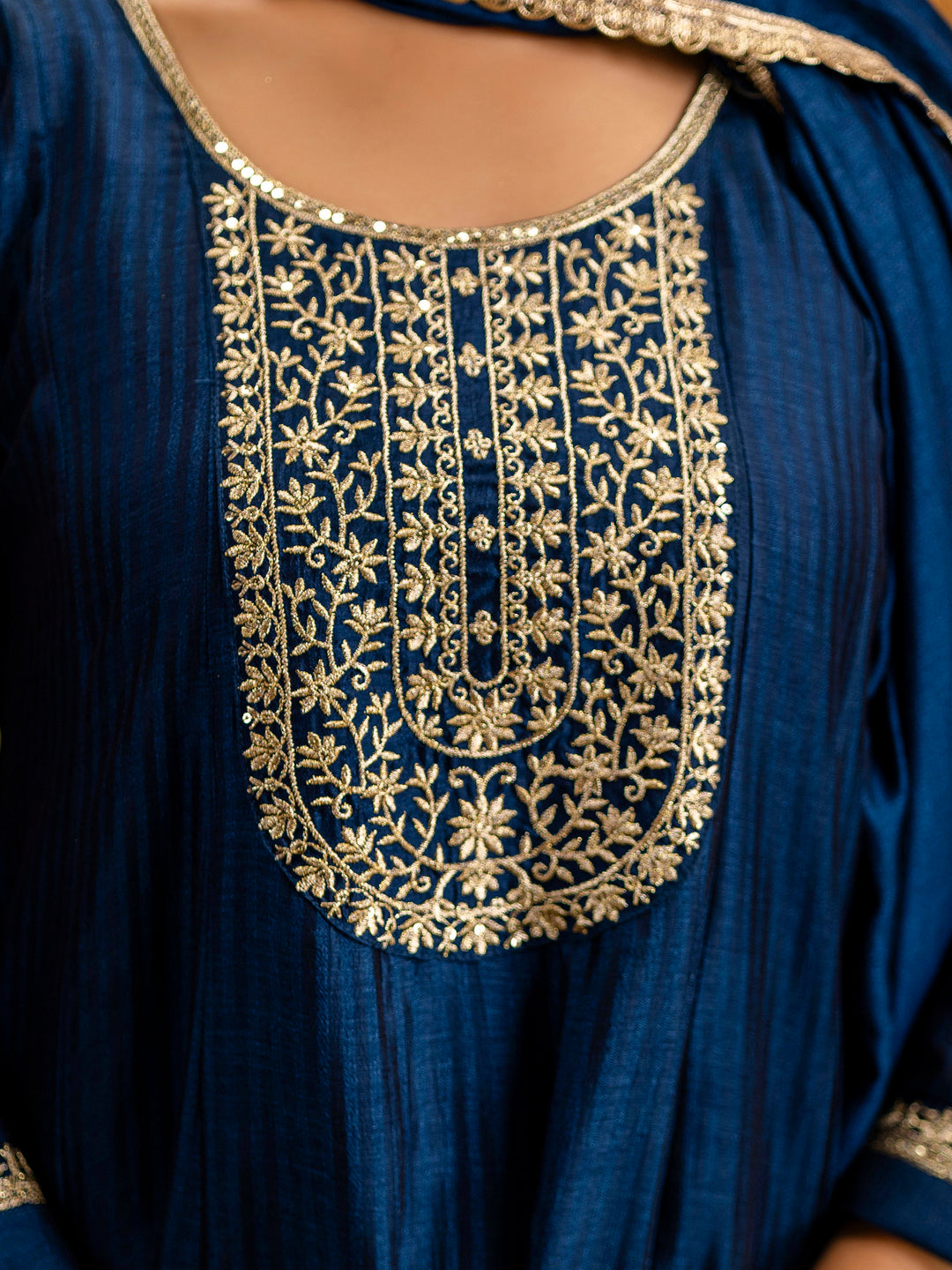 Dayanidhi Women's Embroidered Silk Blend Anarkali Kurta Pant With Dupatta Set