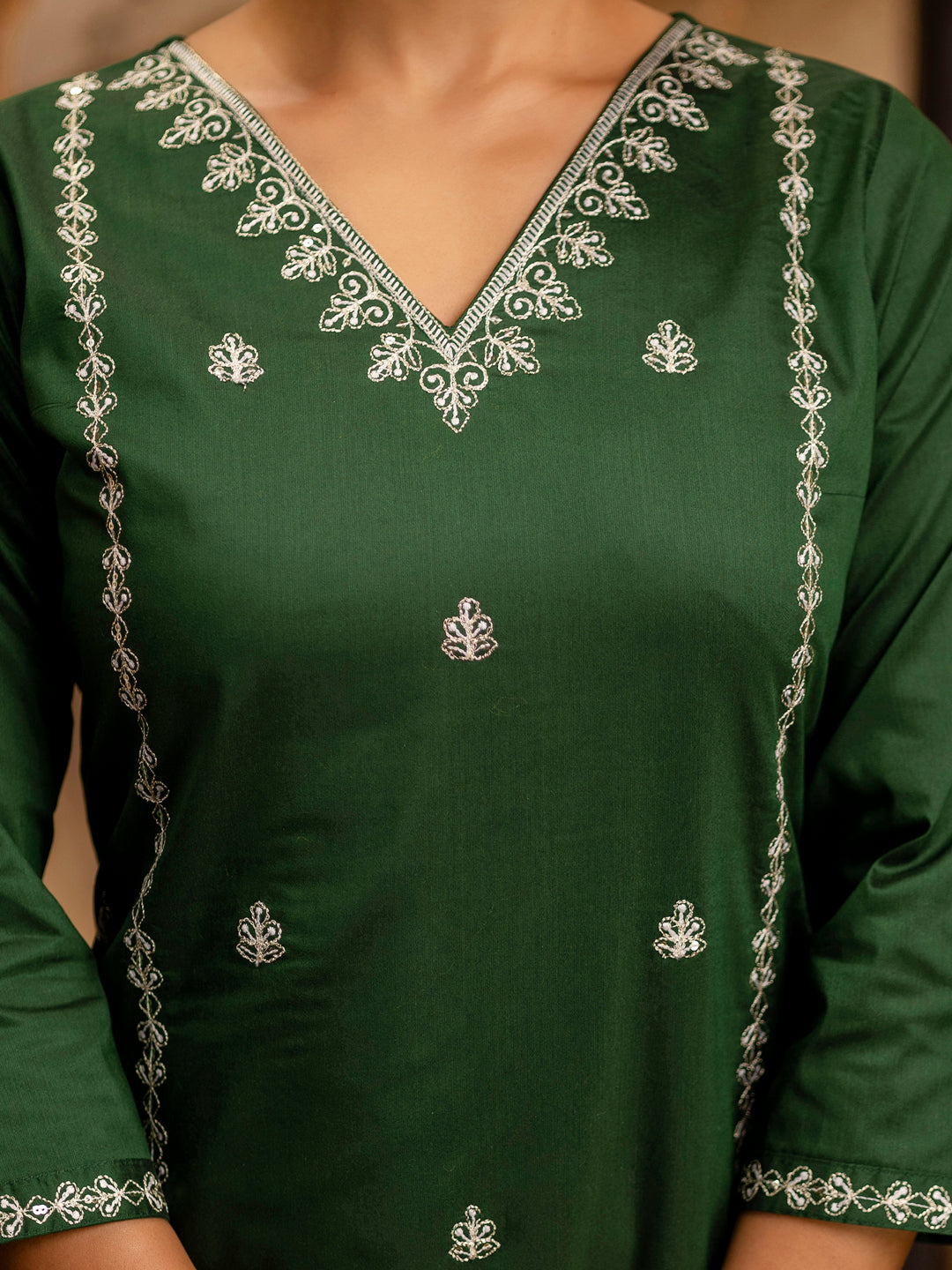 Ayaana Women's Embroidered Silk Blend Calf Length Straight Kurta Trouser with Dupatta Set