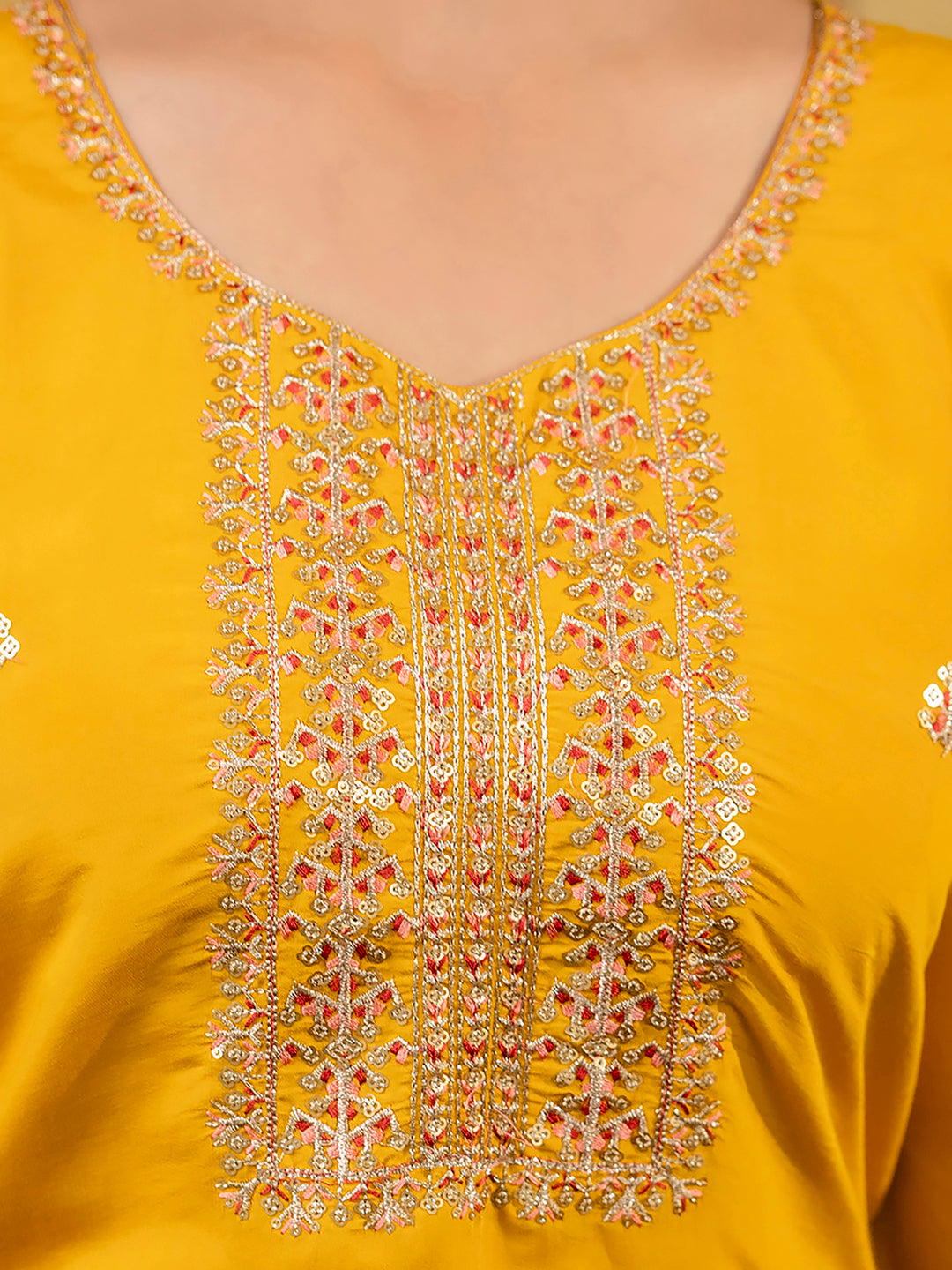 The Silk Fabric in this attractive Color ready to wear Kurta Set will make sure that the fitting of this beautiful readymade Kurta Set looks elegant on you. Crafted from Silk Fabric, it is light in weight and will be soft against your skin. Its unique design and beautiful colour will fetch a lot of second glances as you club it with contrast colored pumps and flashy accessory.