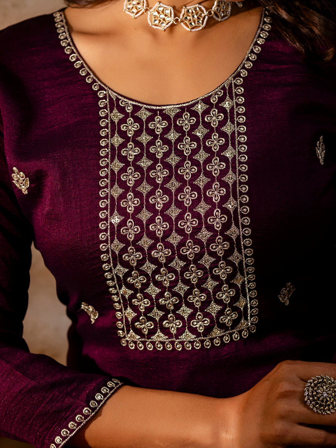 Maanya Women's Embroidered Silk Blend Kurta Pant Sets With Dupatta